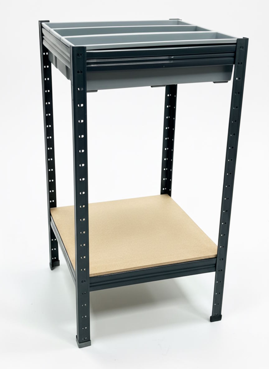 Удобство использования: Конструкция позволяет снять любой ящик отдельно от других или быстро заменить ящики на полку, адаптируя пространство под текущие задачи.