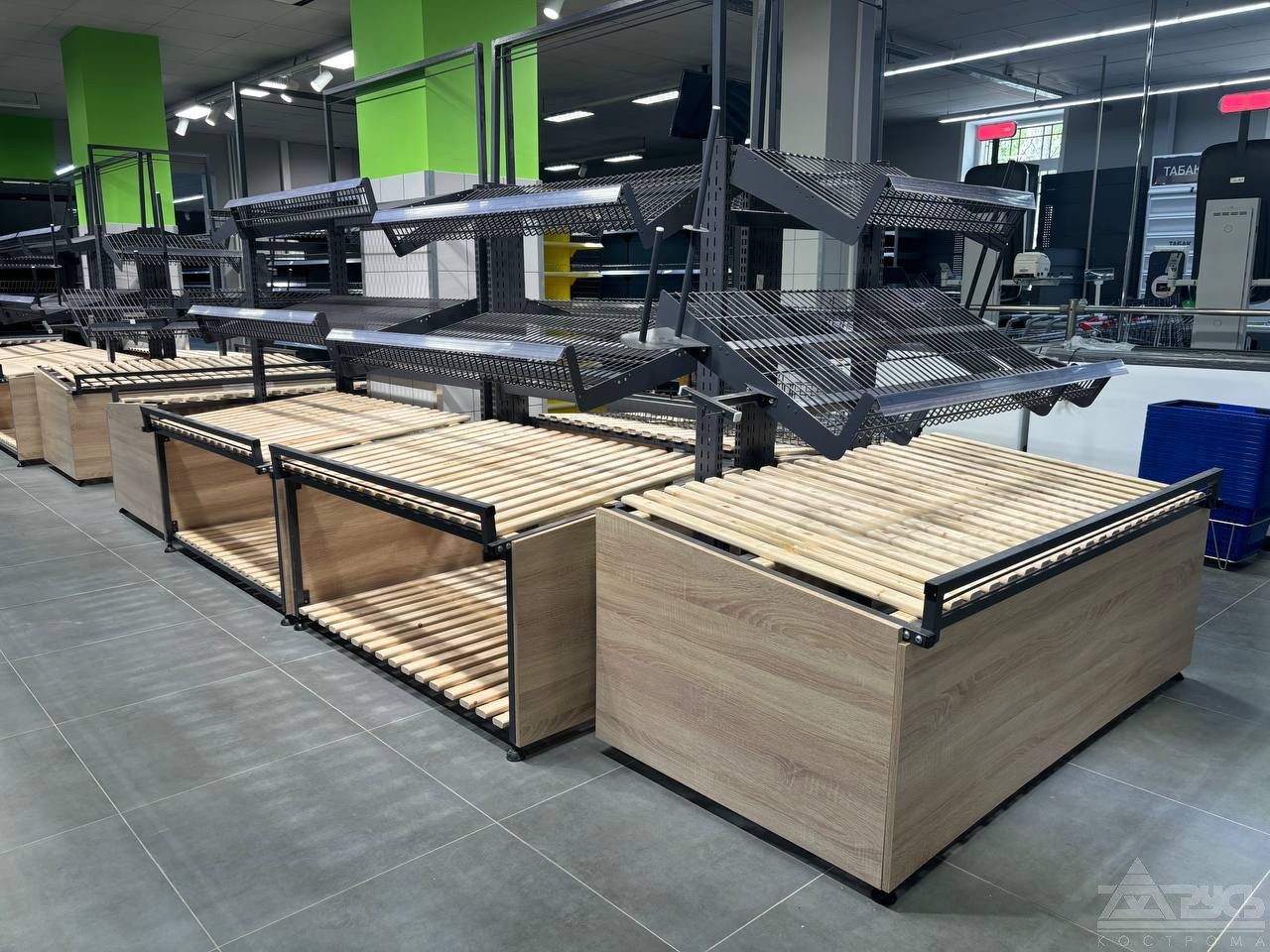 Обустройство зоны свежих продуктов: Установлен современный овощной развал.
